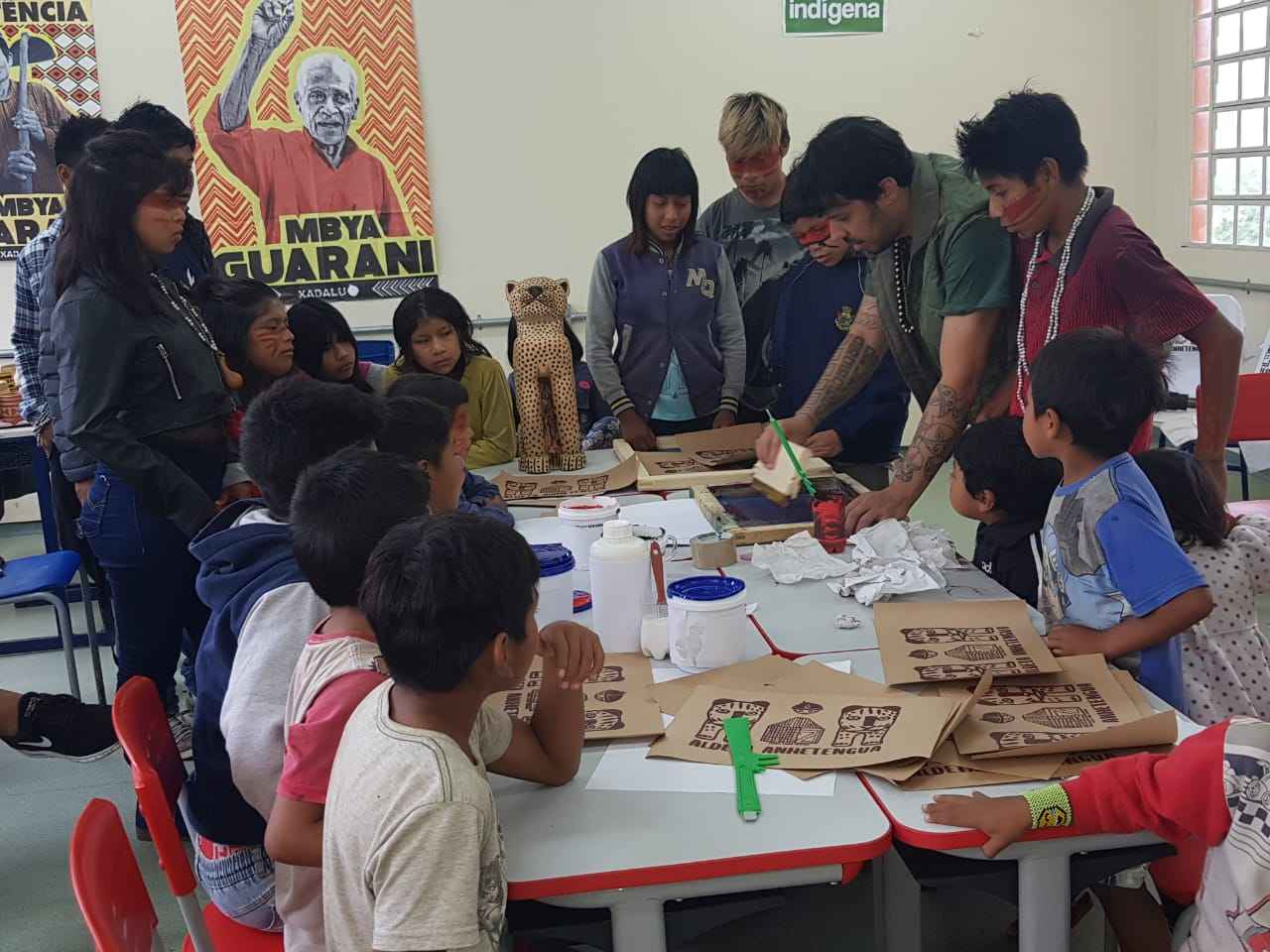 Oficina de serigrafia na Escola Estadual Indígena Anhetenguá