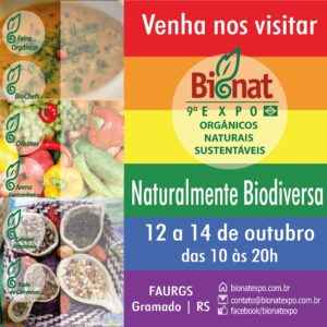 A BioNat Expo é um evento pioneiro no RS com vitrine e plataforma de negócios para o segmento no Estado. Realizada em Porto Alegre/RS, desde 2008, seu principal objetivo é fomentar, promover e divulgar a cadeia dos orgânicos e sustentáveis, a educação alimentar, nutricional e ambiental. Esse é o primeiro ano que a Feira ocorre em Gramado, na Serra Gaúcha.